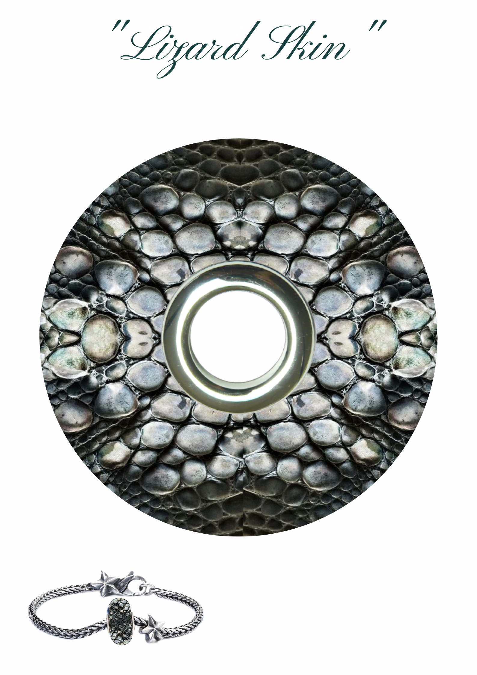 Lizard Skin è un omaggio alla Natura Selvaggia. Questo bead animalier presenta una texture sorprendente a pelle di lucertola in argento brunito e scaglie lucenti tipiche di questo animaletto, dove luce e ombra si rincorrono magicamente. La Lucertola è un animale a cui viene attribuita una forte carica simbolica :rappresenta forza e capacità di sopravvivenza, rappresenta inoltre il valore dell’adattabilità, un valore necessario all’animale come all’uomo, per poter sopravvivere e andare avanti anche quando sulla nostra nostra strada si pongono ostacoli che possono sembrare invalicabili. Sapersi adattare ad ogni situazione andare sempre avanti senza mai arrendersi è l’insegnamento che l’uomo deriva da questo piccolo rettile, tenace e tranquillo. La lucertola è simbolo di immortalità perché richiama il concetto di rigenerazione. Incarna l'eternità della luce ed è per questo motivo presente in molti monumenti, essendo considerata anche una guida per viaggiare nel mondo degli spiriti.