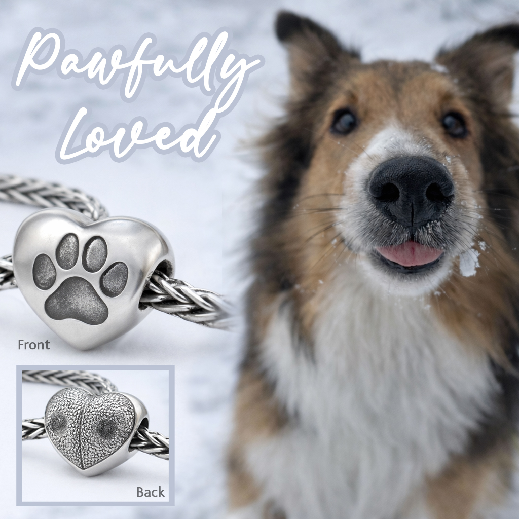 The texture on the front of the bead is inspired by her nose. Not as a realistic image, but as a feeling. It represents all those silent moments when she was simply there for me, without needing to be asked. On the back, the heart carries a paw print. It stands for the marks Lilly has left on my life. Deep, lasting and impossible to erase.