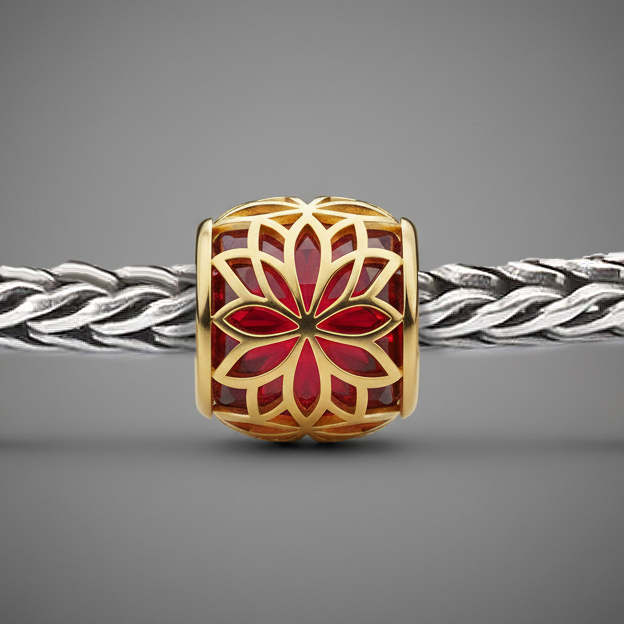 The Vessel: As a "fretwork" cage, the lotus acts as a calming filter, softening the intensity of the red stone and transforming "heat" into "harmony."