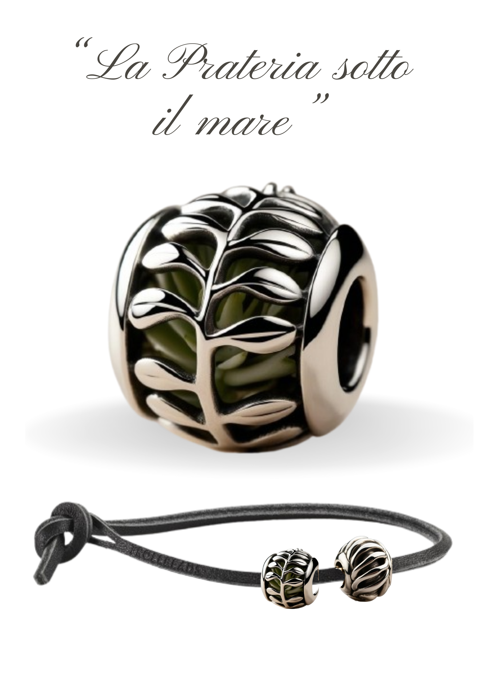 Un bead nato per raccontare la vita sommersa, fragile e potente, del mondo marino. Ispirato alla Posidonia oceanica, pianta marina essenziale per la salute del Mediterraneo, questo bead ne richiama l’aspetto fluttuante e selvaggio. Le sue forme ricordano ciuffi di alghe mossi dalle correnti