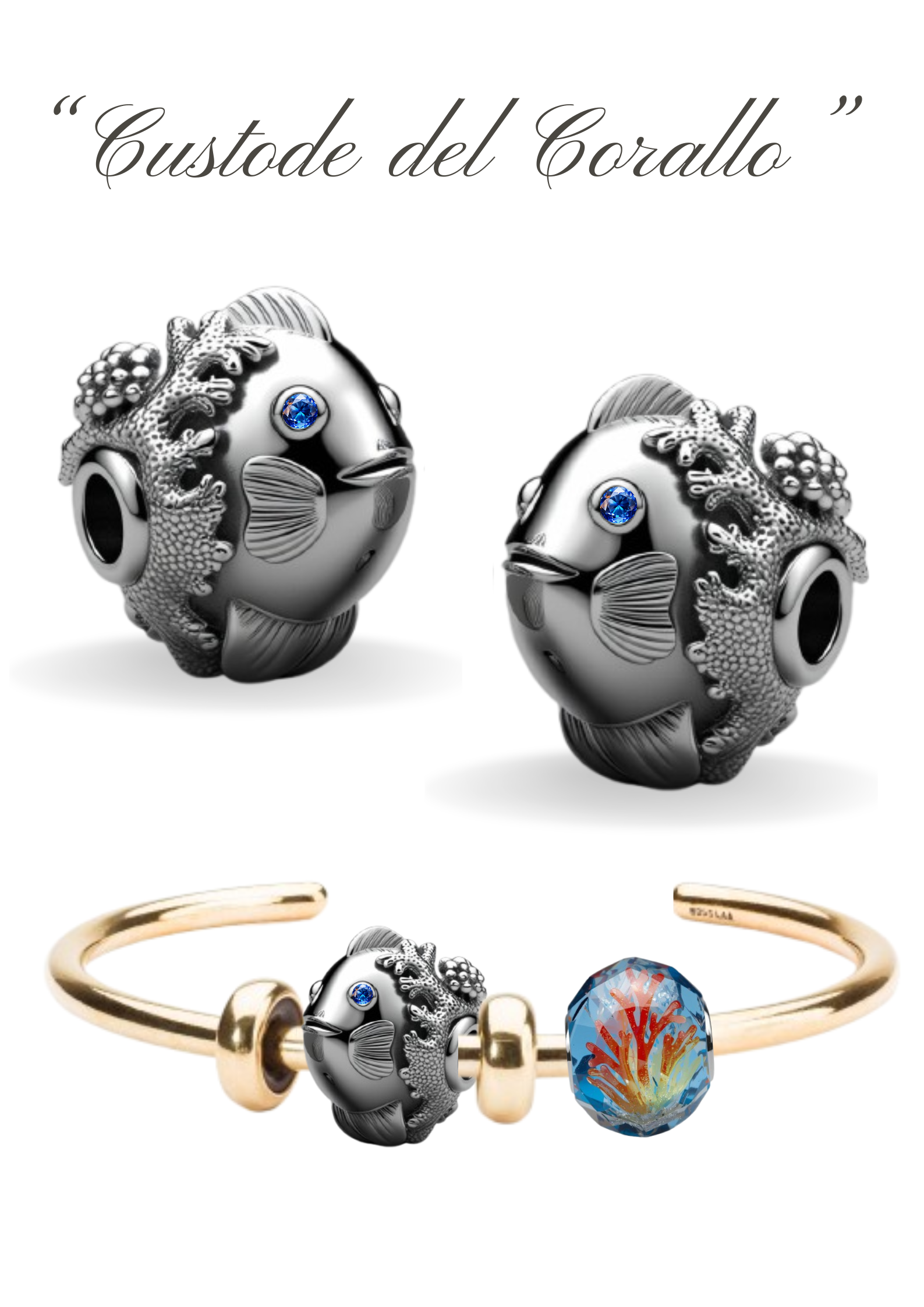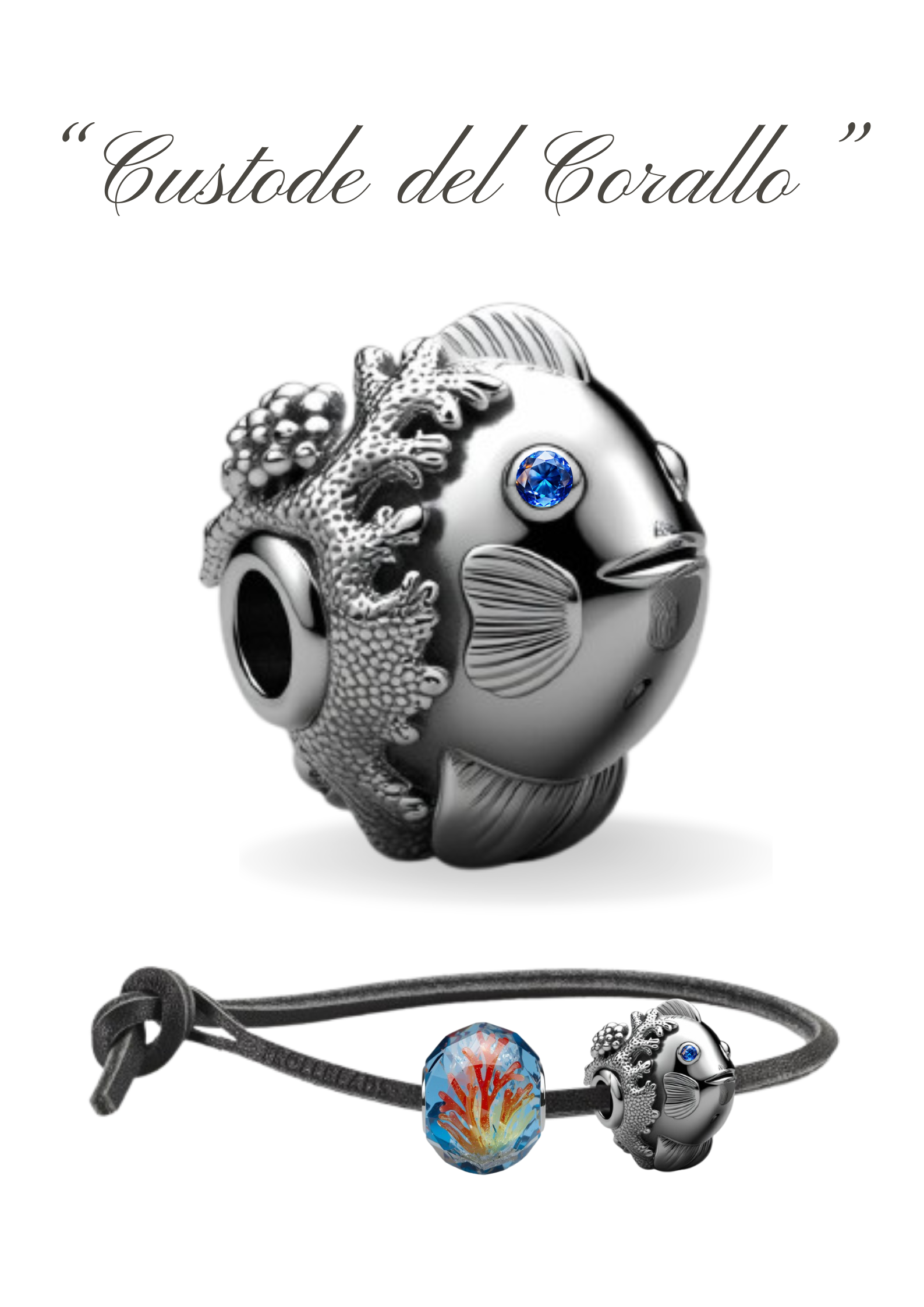 Un Bead a forma di pesce che presenta un design con dettagli marini come coralli e bolle, motivi che ricordano la vegetazione marina. Rappresenta un omaggio alla natura e al potere rigenerante delle acque. Sottolinea, inoltre, l’unione tra il pesce e l’ecosistema del corallo e combina la simbologia della vita, della rinascita e dell'adattabilità del pesce con la protezione, la fortuna e la vitalità del corallo ed in particolar modo con il corallo rosso. Questo amuleto, spesso legato al Mediterraneo, rappresenta un potente portafortuna contro il malocchio, la prosperità e la forza vitale. Il bead rappresenta un piccolo pesce che si fonde armoniosamente con una struttura ramificata di corallo, suggerendo che il pesce stesso è parte integrante della barriera corallina e la protegge. Il pesce simboleggia crescita, trasformazione e la capacità di rinnovarsi, rendendo il bead un simbolo di trasformazione personale. Sia il pesce che il corallo sono associati all'abbondanza e al buon auspicio. Un bead per celebrare momenti importanti, simboleggiando la libertà, la continuità e la forza. Il significato del corallo è quello di essere visto come un simbolo di protezione, fortuna, prosperità e bellezza. Il significato del corallo è diventato anche un simbolo di resistenza e di adattamento. Le barriere coralline infatti sono in grado di sopravvivere in ambienti estremi e di rigenerarsi dopo eventi catastrofici, come ad esempio gli uragani. Questa capacità di resistere e di adattarsi alle sfide è un simbolo di speranza e di perseveranza per molte persone.Il corallo è un ecosistema estremamente fragile e prezioso, minacciato dai cambiamenti climatici. Il pesce "custode" simboleggia la protezione attiva dell'ambiente marino. Indossare questo bead diventa una dichiarazione d'intenti a favore della salvaguardia degli oceani.