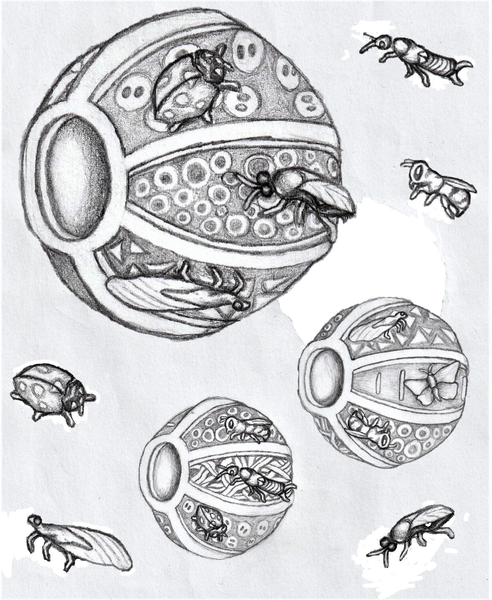My bead design also shows sections with different materials and their little inhabitants. Let's welcome the world of insects also to our bracelets!