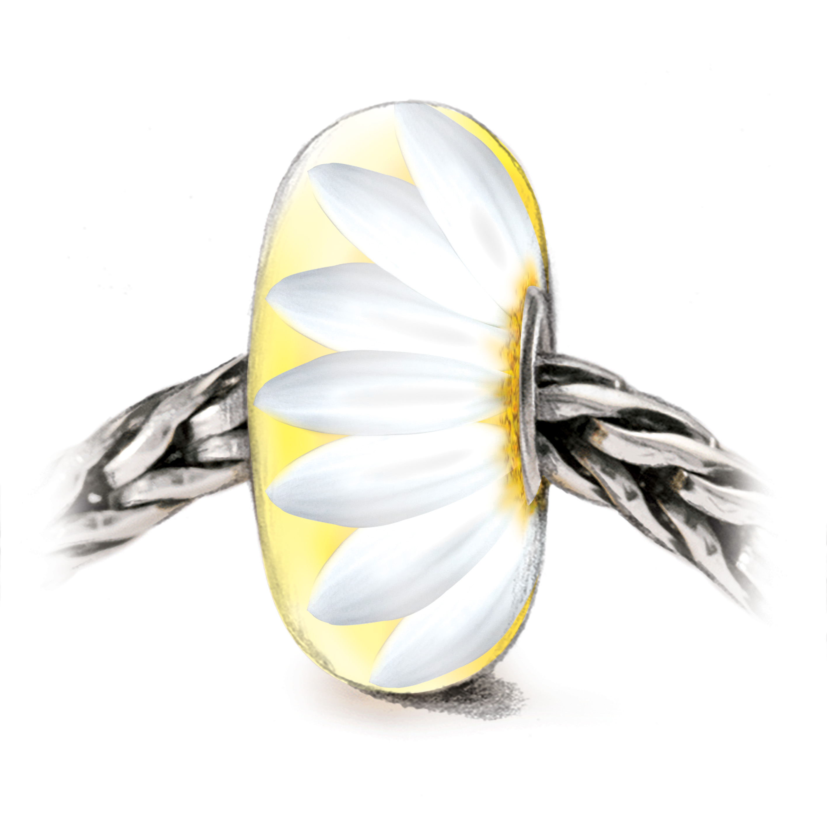 This cheerful yellow bead features pure white petals, which fold delicately around the silver core. Why not create your very own daisy garland - made entirely of glass beads!