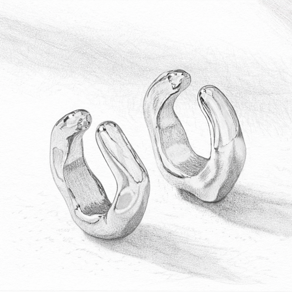 A link between past and future captured in a single piece of jewelry. The flowing shape of the ear cuffs reflects the passage of time.