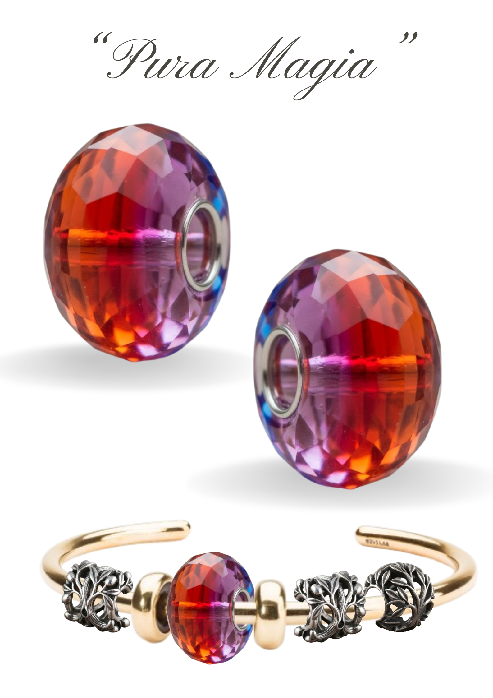 Evoca un senso di pace, romanticismo e meraviglia, ideale per arricchire bracciali componibili con un tocco di luce calda e vibrante. Grazie alla superficie sfaccettata, il bead non è mai uguale a se stesso: ruotandolo, i colori si mescolano e i riflessi cambiano, offrendo uno spettacolo visivo sempre nuovo.