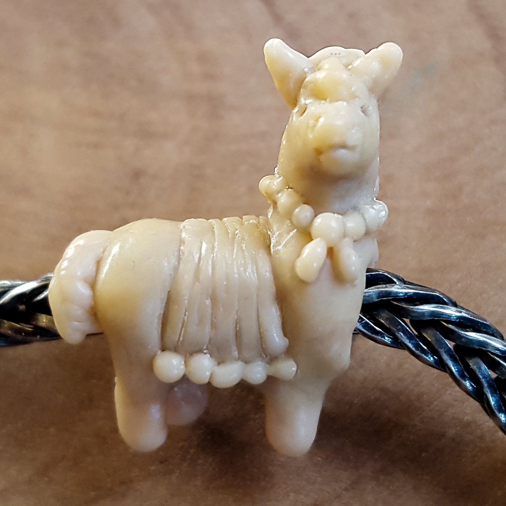 Das Design ist ein Alpakabead aus Silber.