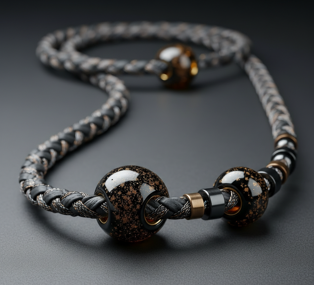 The intriguing allure of our glass bead "MYSTERY" captivates, generating wonder and lending a touch of enigma to those who proudly wear it.