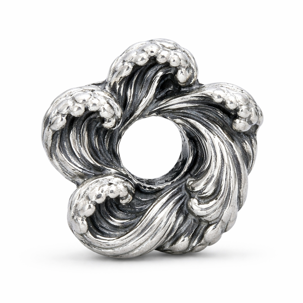 Born where the ocean meets the horizon, Tidal Bloom captures the quiet poetry of the sea. Each sculpted wave curls inward like a petal shaped by the tide, echoing the rhythm of water in constant motion. Darkened recesses mirror the ocean’s depth, while polished silver crests shimmer like sunlight dancing on the surface.