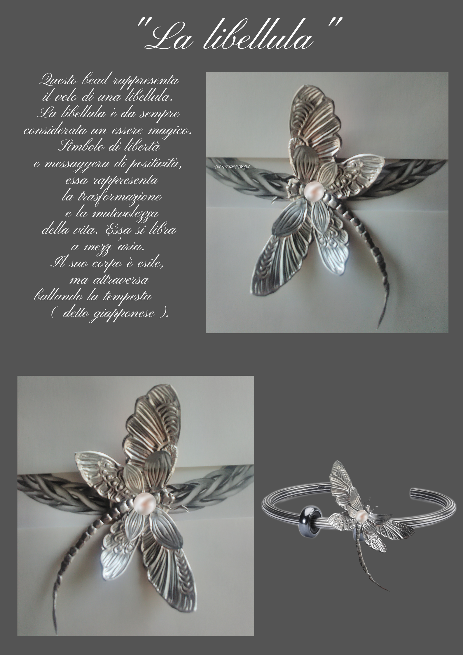 Questo bead rappresenta il volo di una libellula. La libellula è da sempre considerata un essere magico.
