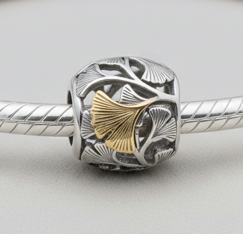 With its stunning golden leaves, the ginkgo biloba symbolizes longevity, balance and harmony. I created an openwork barrel full of silver ginkgo leaves and one in gold to remind us of their beautiful colour in autumn.