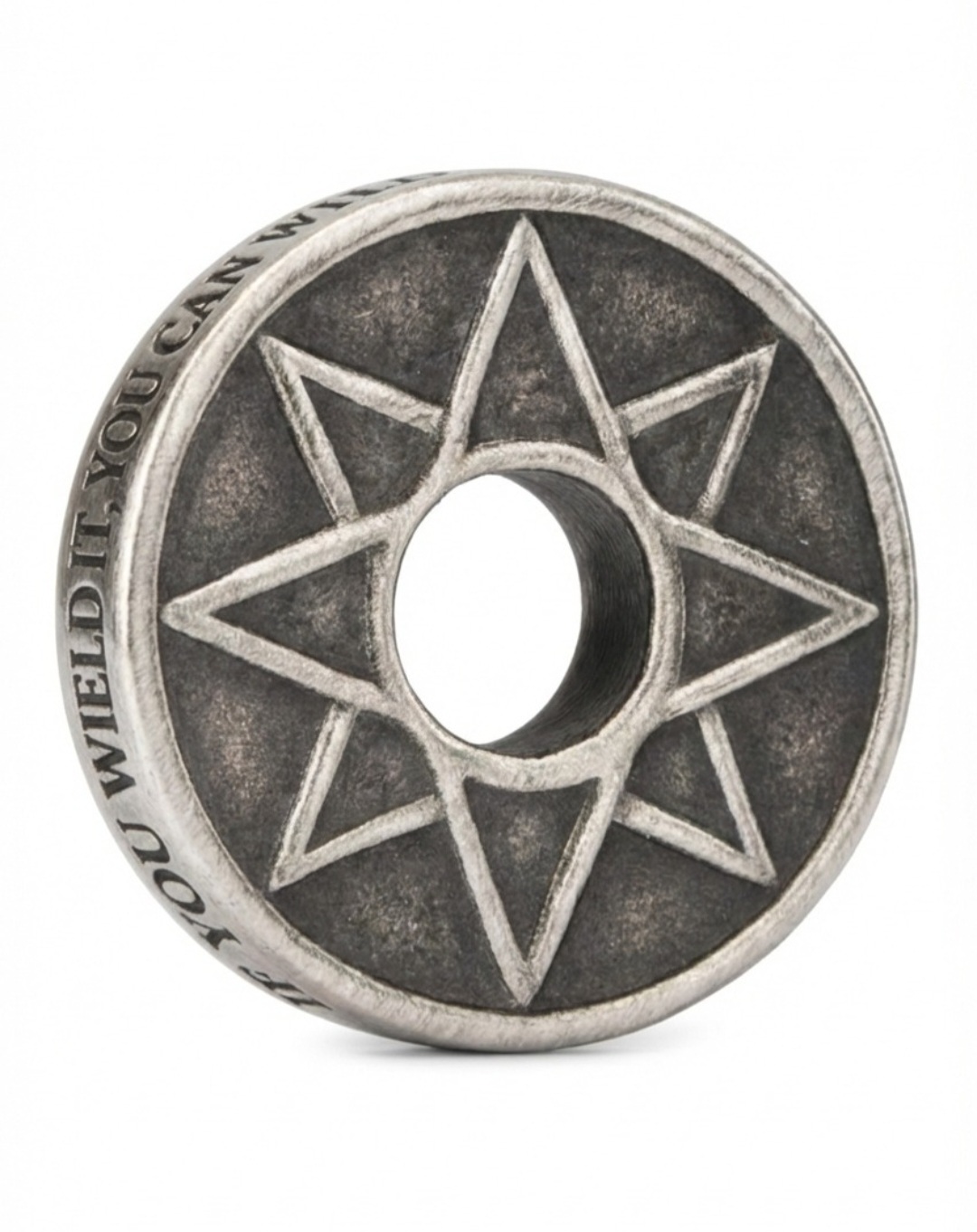"If you Wield it, you can Will it" written around the rim to remind you, to have hope and to help guide yourself through life. To provide balance and keep that knowledge close to you.