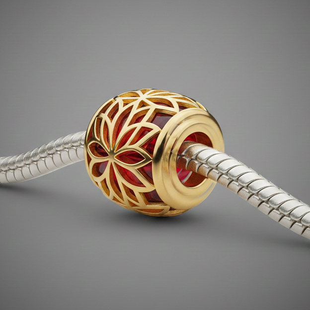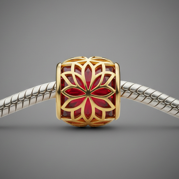 The Vessel: As a "fretwork" cage, the lotus acts as a calming filter, softening the intensity of the red stone and transforming "heat" into "harmony."