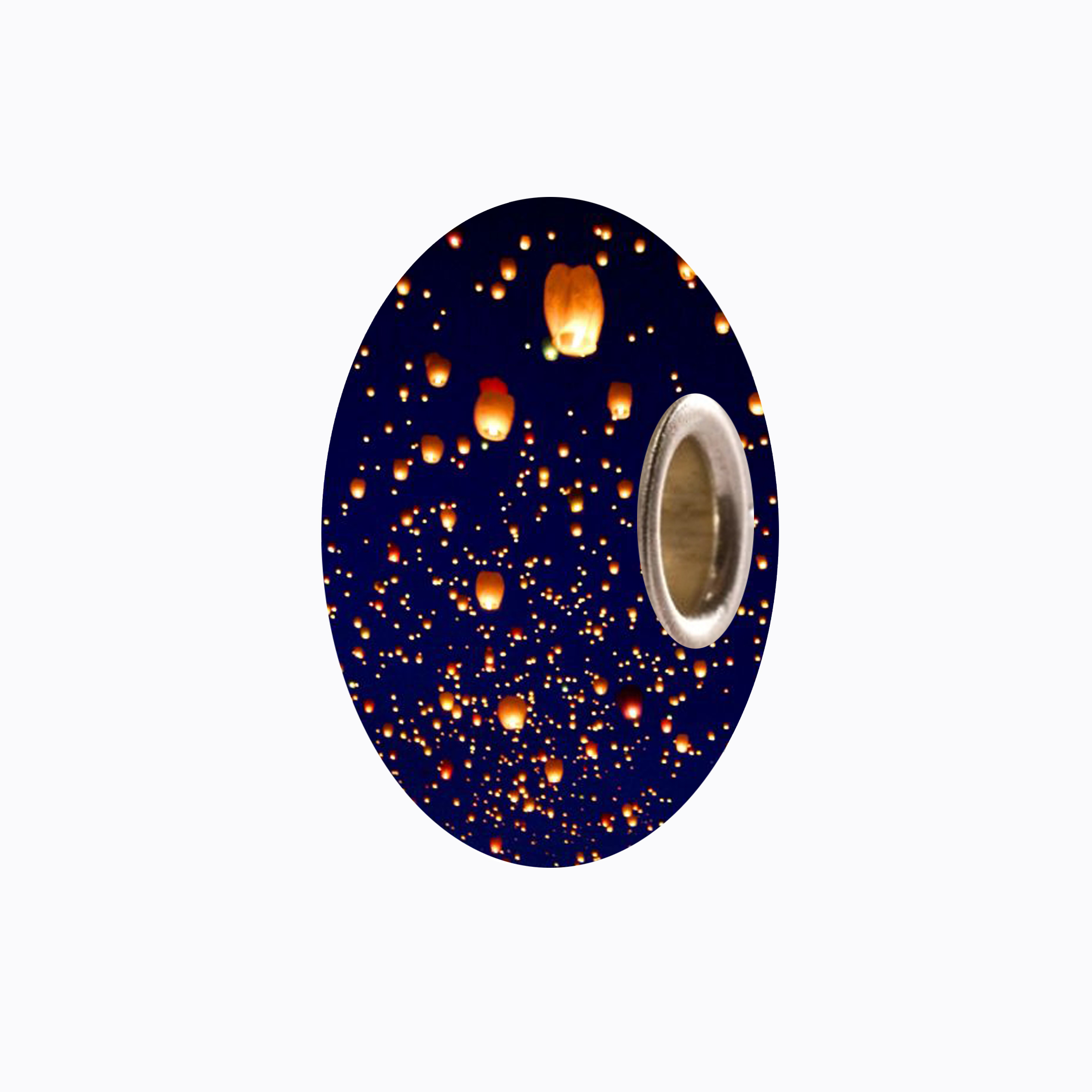 Un vetro blu con spruzzi di arancione che ricordi un cielo illuminato da lanterne volanti… uno spettacolo mozzafiato che porta gioia nei cuori.