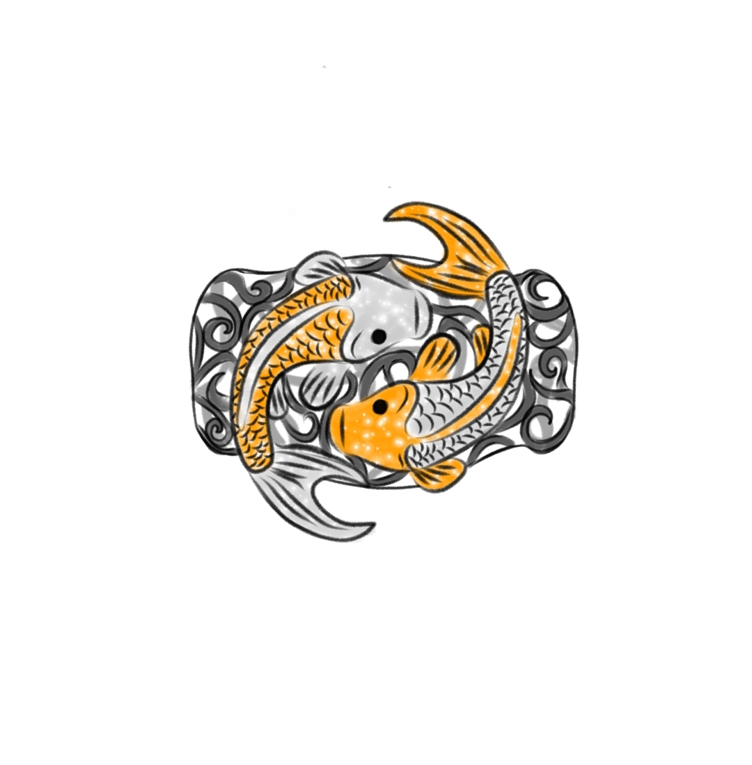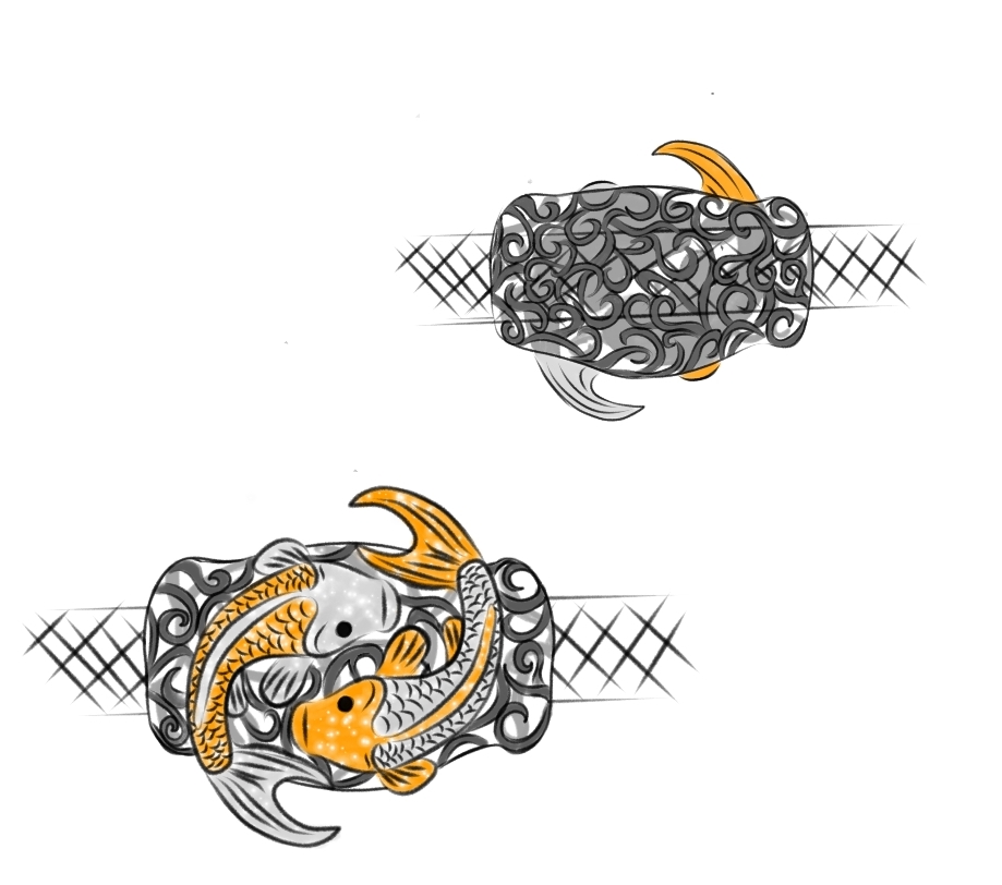 Two fish circling in an endless dance upon a bead textured with waves represent the search for perfect balance. This design connects my love for the water with the philosophy of inner peace. The wave patterns on the metal remind us that while life is in constant motion, we can always find harmony in the center of the flow.