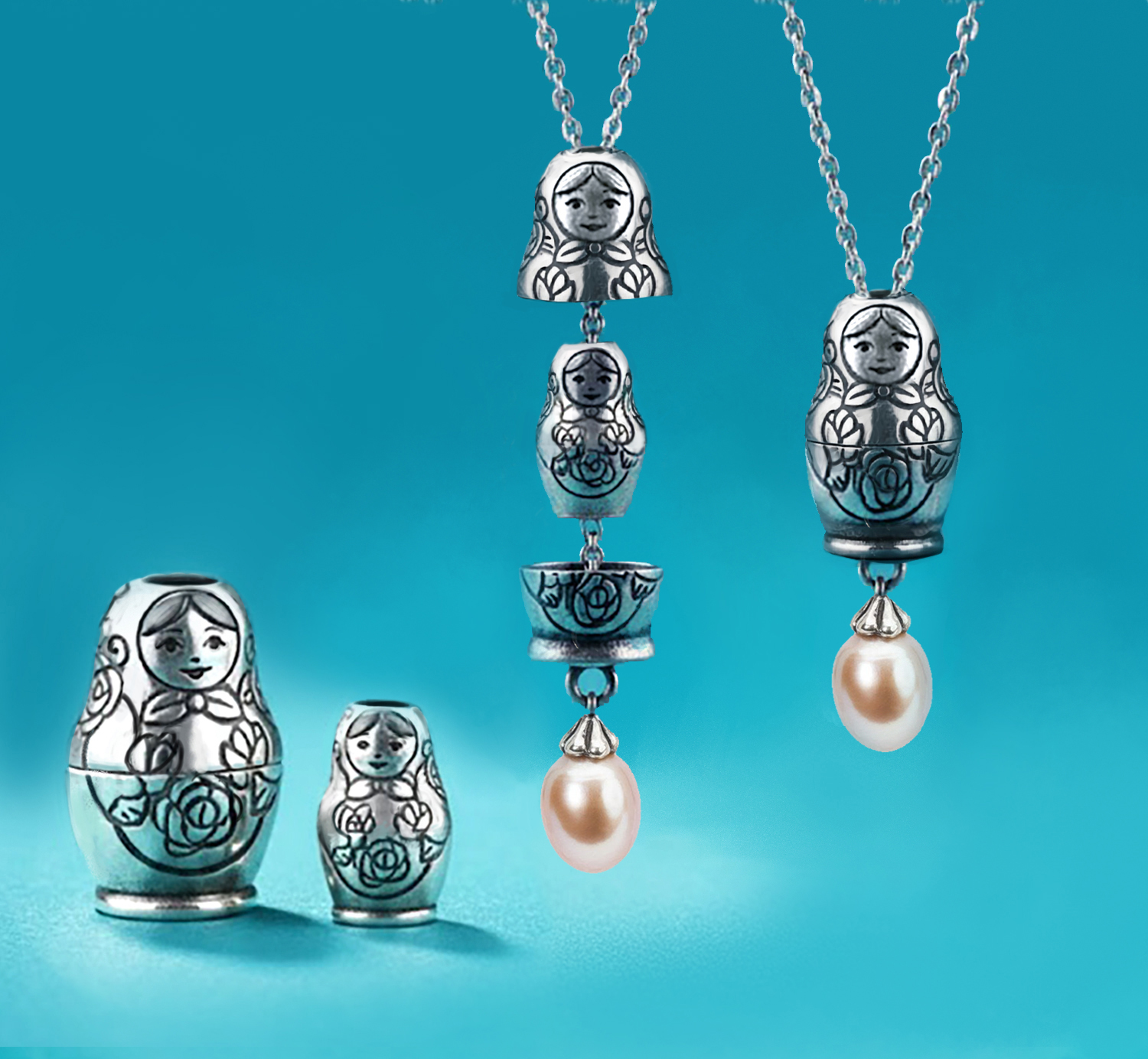 I love Trollbeads because it allows you to be creative in how you wear your jewelry. That, combined with beatiful designs, make it so much fun to collect. This bead design is keeping with that tradition. It's a functional 3 part nesting doll pendant. Two beads make up the outer body, while a small one sits inside.