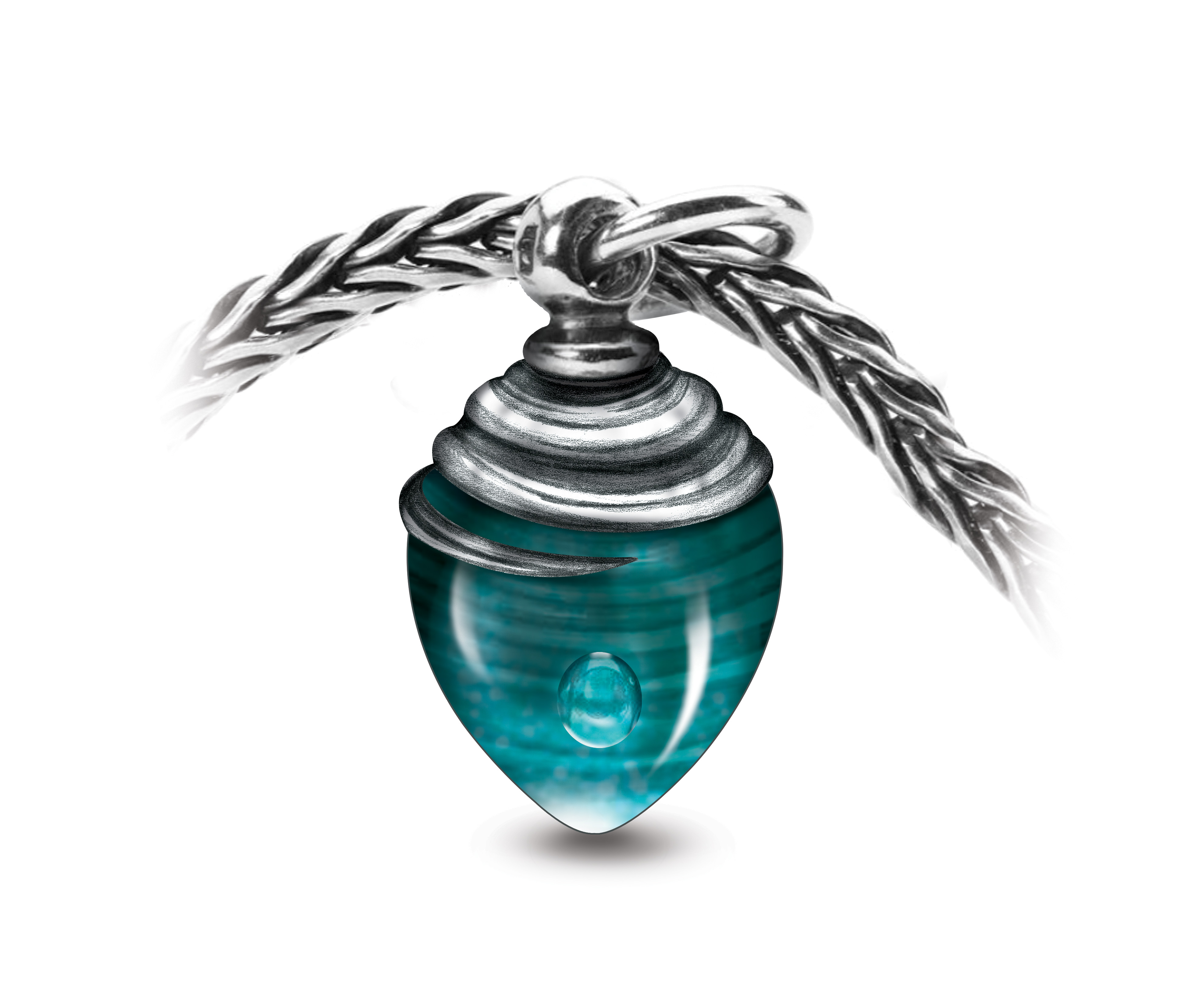 My bead can be worn on a bracelet, bangle or as a pendant. The silver ripples gradually increase in size as they embrace the elongated glass orb concealing a single drop. Within the deep turquoise ocean those ripples continue to expand. My design represents change. It reminds us not to be afraid of the unknown. However small it might seem, you can make a difference. Take that plunge! “Every drop in the ocean counts – Yoko Ono”.