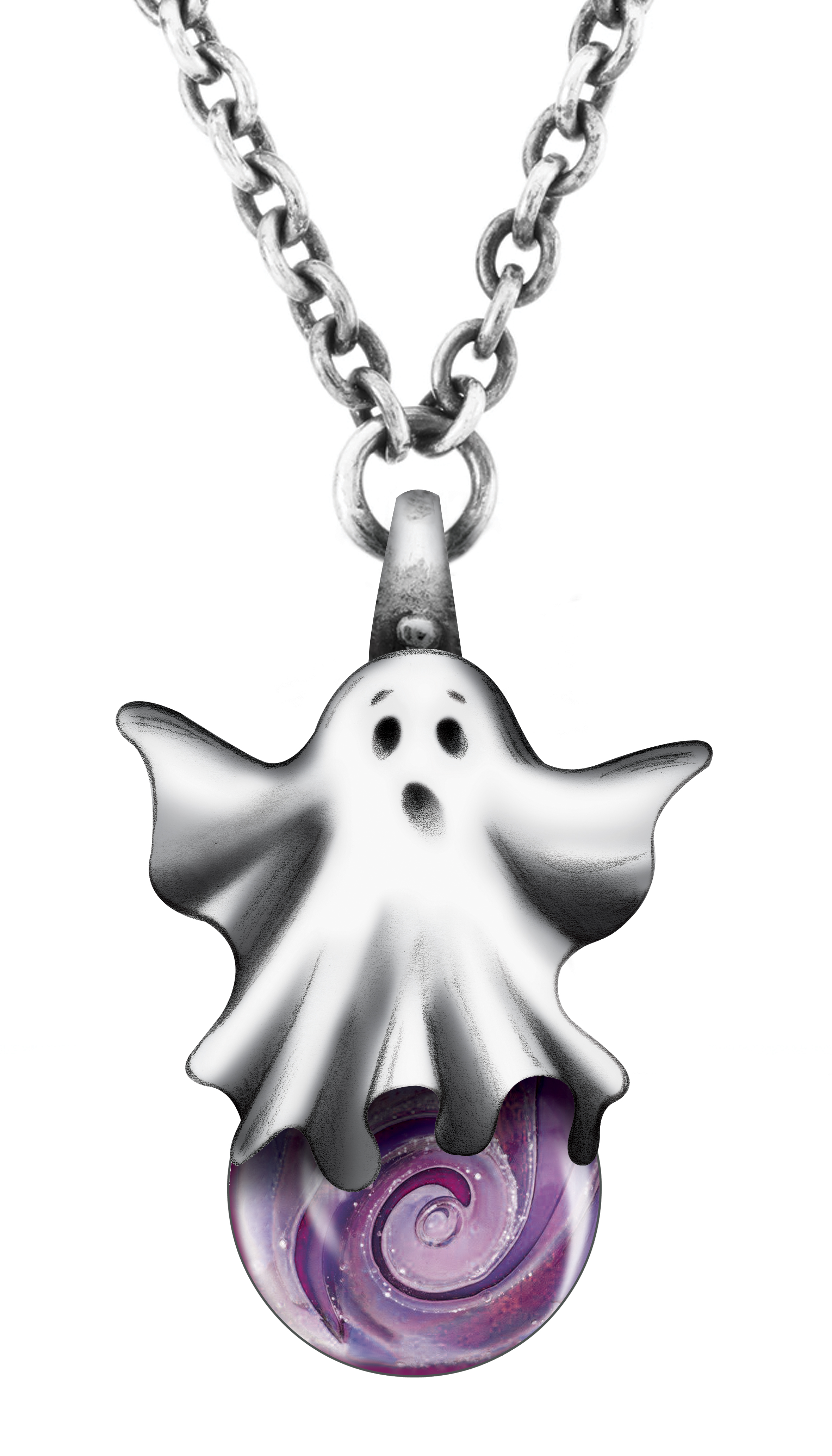 “Always be transparent. The things we conceal often haunt us the most”.The Ghost Pendant has a clasp allowing it to be worn on the Changeable Fantasy Necklace. It can also be worn on a foxtail necklace or as a dangle bead on a bangle or bracelet.
