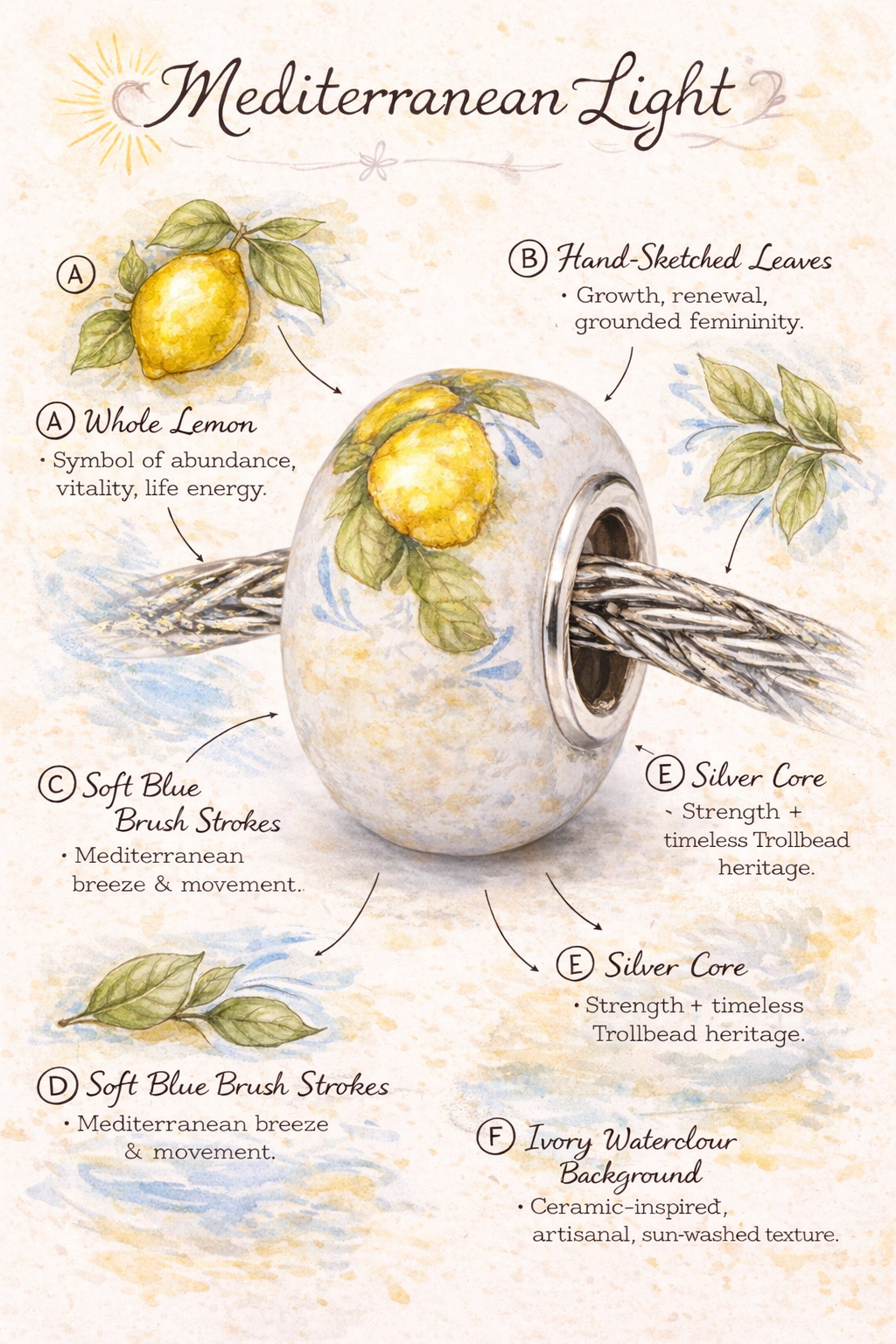 Sunlight lingers on her wrist like a Mediterranean afternoon.