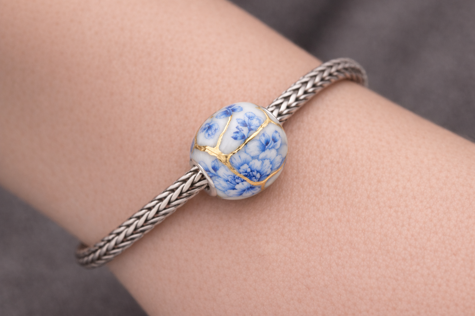 Questo beads, esalta l’arte giapponese del kinsugi. Un’arte che valorizza l'unicità dell'oggetto riparato, evidenziando le cicatrici come parte preziosa della sua storia.Le crepe, invece di essere nascoste, vengono impreziosite con oro, rappresentando la trasformazione della fragilità in un punto di forza.L'oggetto, dopo la rottura, non torna come prima, ma diventa più bello e resistente, rappresentando un percorso di guarigione. Il Kintsugi insegna ad accettare che gli oggetti e la vita cambiano. Questo beads vuole simboleggiare il cambiamento e la trasformazione che ci accompagna nella vita per questo,Rinascita.