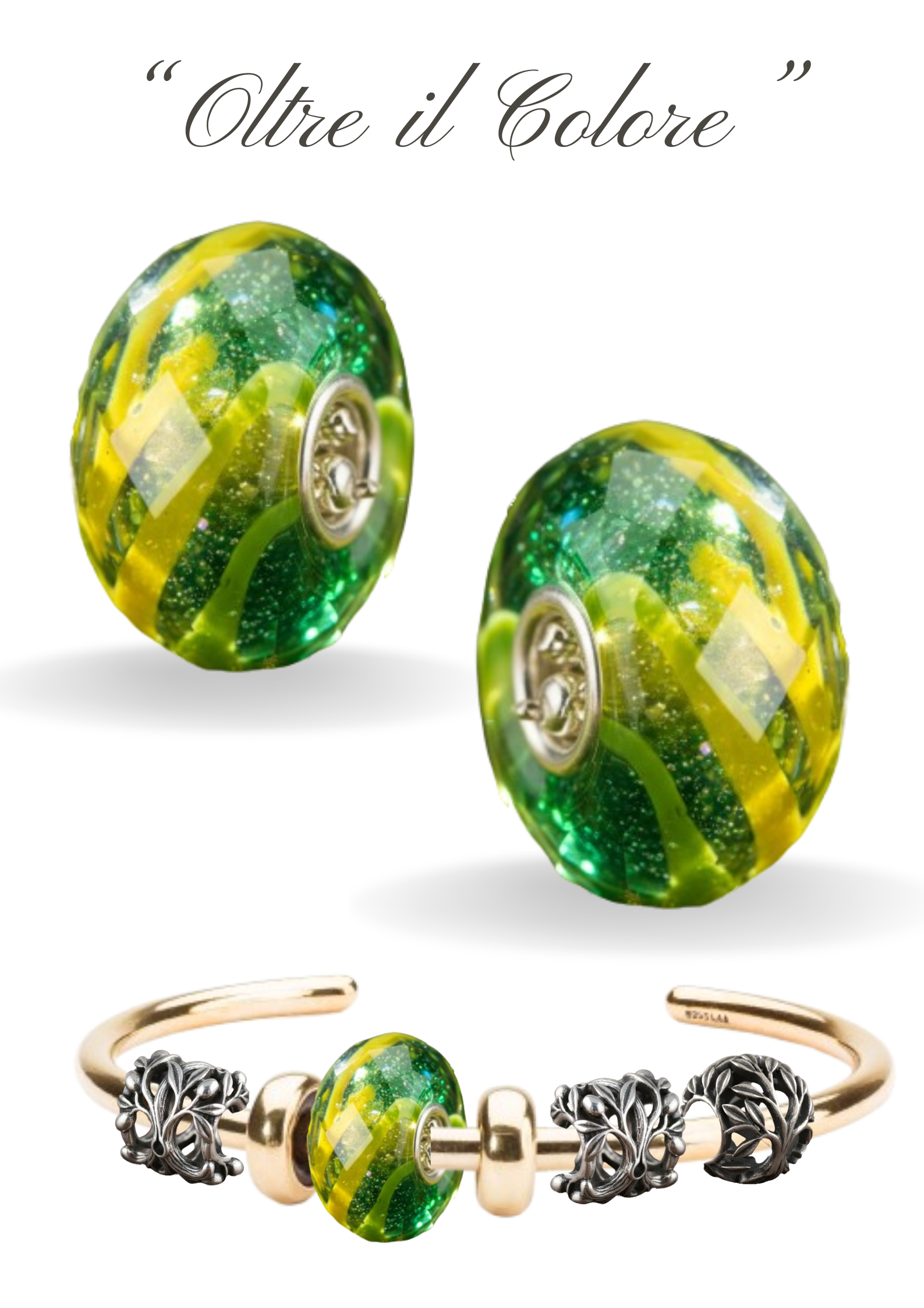 Il bead è ispirato ai primi raggi del sole che risvegliano la natura. La luce è vista come energia vitale primordiale. I colori vivaci, la brillantezza del vetro e i materiali utilizzati riflettono perfettamente l'idea di risveglio e luminosità e rappresentano freschezza e vitalità, simboleggiano l'energia che ritorna nella natura e in noi stessi.