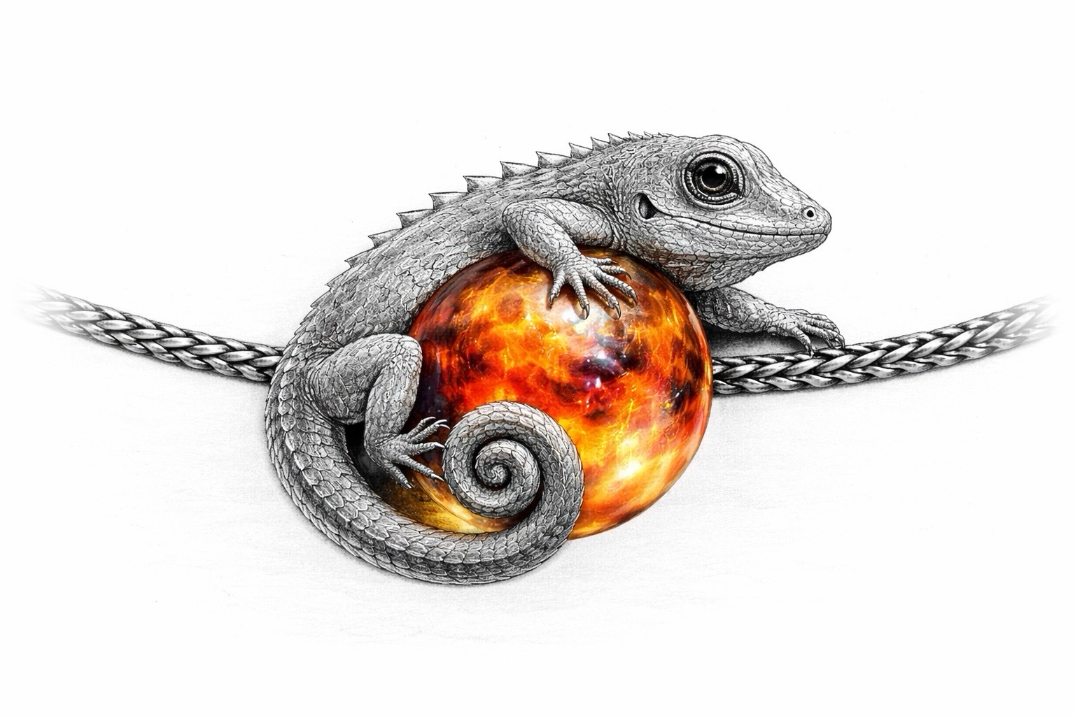 In ancient legends, there was spoken of a spirit of fire named Ignivar, born in the heart of the first star. When the world was still cold, Ignivar descended to earth in the form of a silver lizard and carried with him a spark of celestial flame, preserving it until the hour of the great awakening.