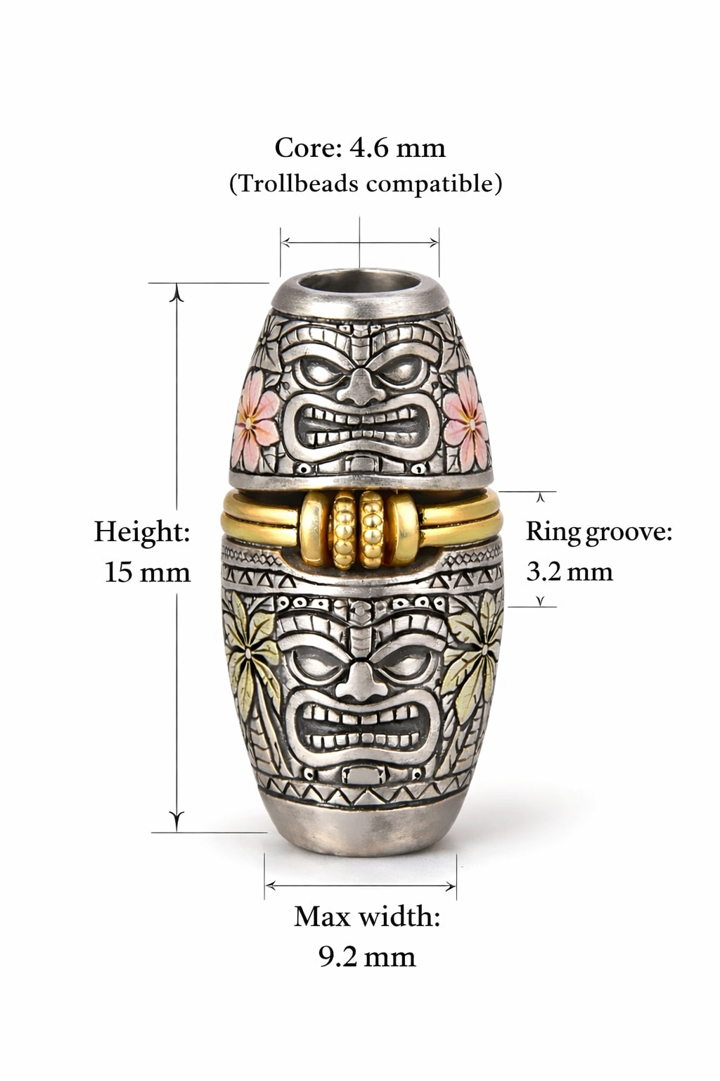 The gentle motion of the freely turning rings creates a quiet rhythm, inviting the mind to slow and drift like tides returning to shore. Inspired by tropical landscapes, the bead evokes a sense of old worlds and simpler times, carrying warmth and reflection — like echoes of places and moments that stay with us long after we leave them.