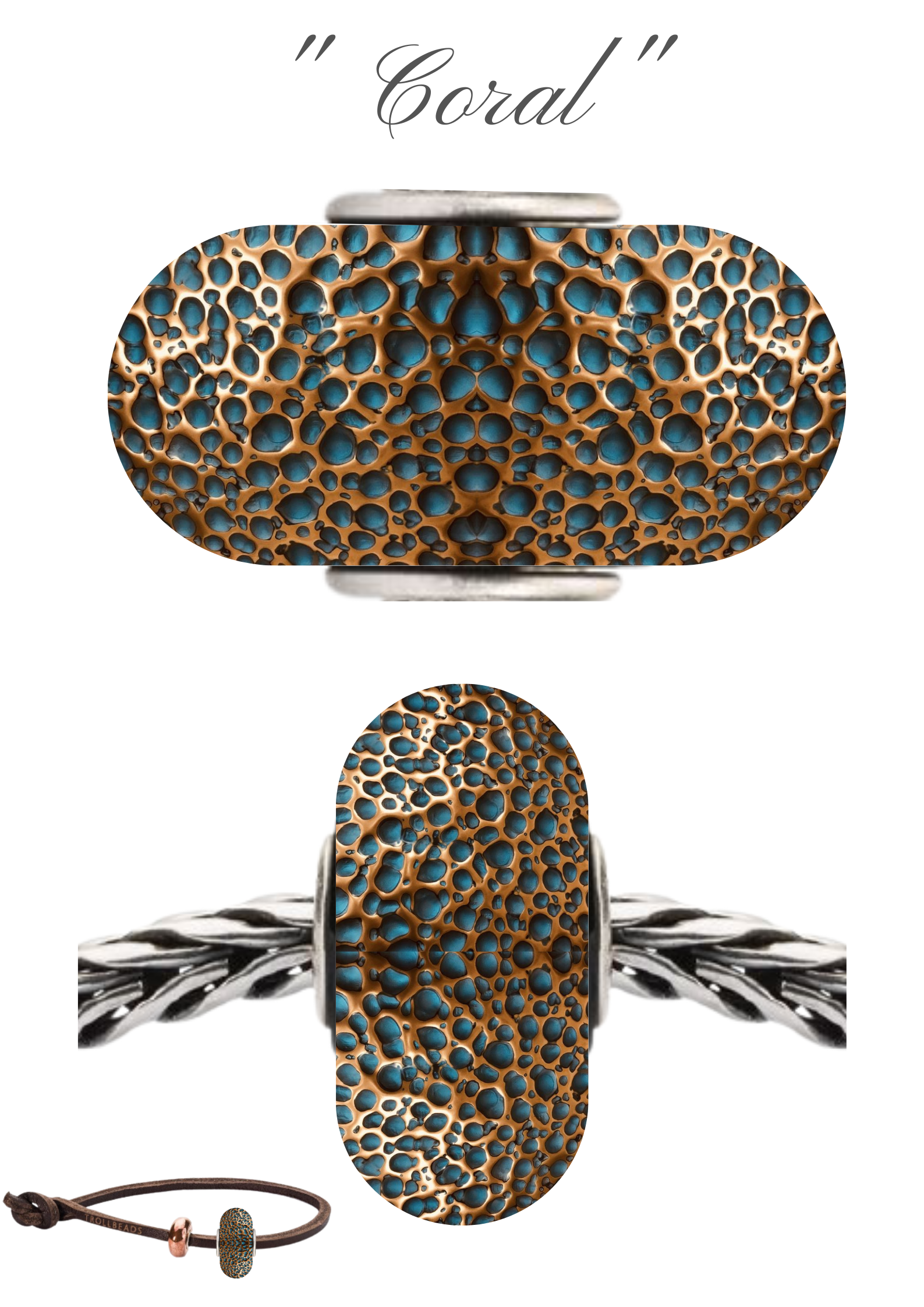 Un omaggio alla Natura Sottomarina. Questo bead ha l'aspetto organico delle colonie coralline,presenta una texture materica: metallo liquido del colore del bronzo splendente con bolle realizzate con una patina blue oltremare che rievoca le profondità dei fondali marini e che lo rende un bead davvero particolare, dal fascino misterioso. Un bead per chi è sensibile e subisce l'infinito fascino del silenzioso Mondo Sottomarino.