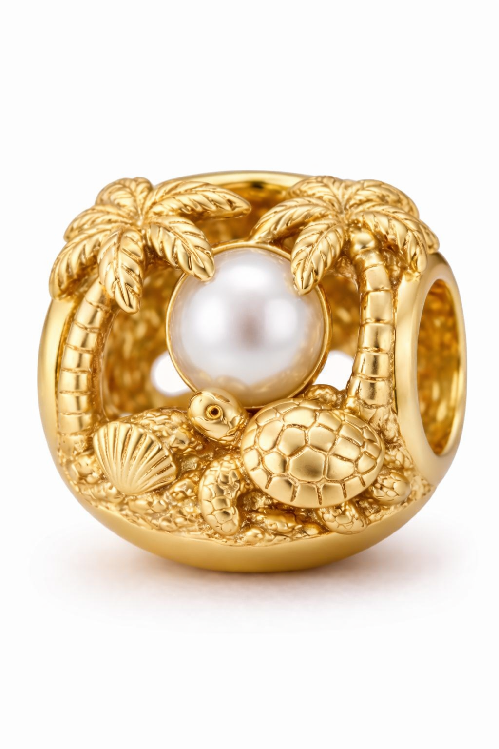 Wo Wellen den Sand berühren und die Zeit still wird, trägt eine schimmernde Perle die Ruhe des Ozeans in sich. Die Schildkröte erinnert an Gelassenheit und Schutz - ein Bead für Erinnerungen an warme Strandtage und das leise Flüstern des Meeres.