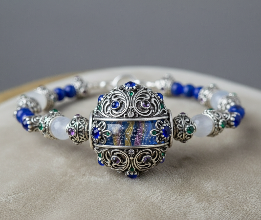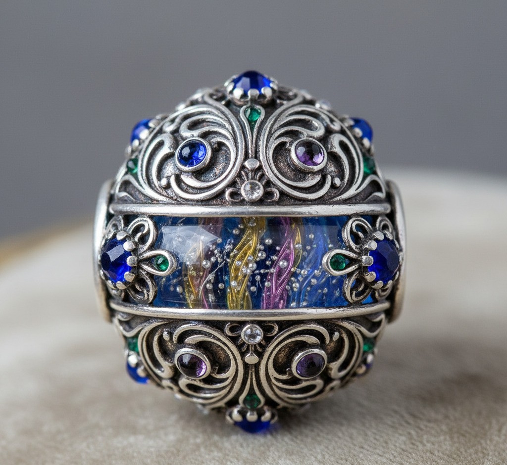 I gioielli spesso presentavano pietre preziose intagliate (diamanti, zaffiri, smeraldi).