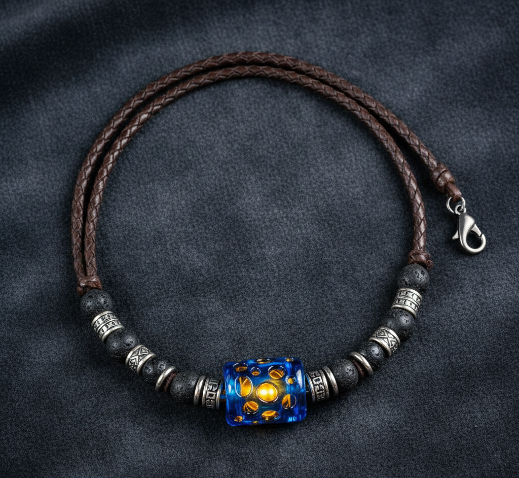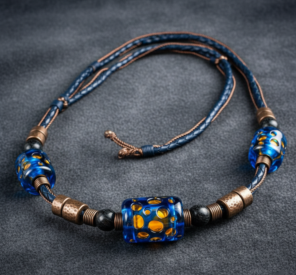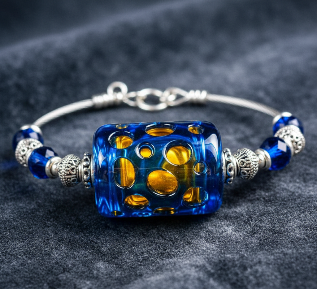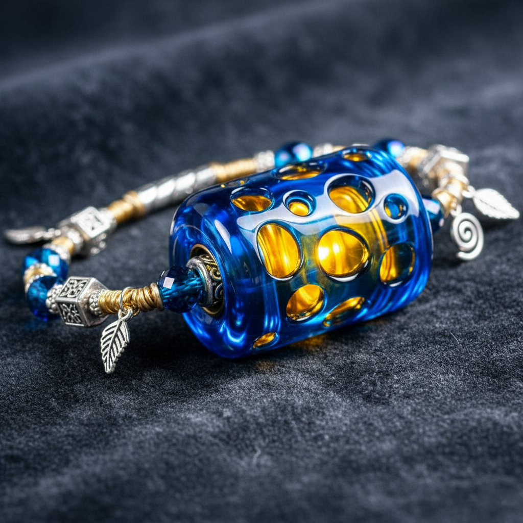 Beautifully crafted from blown glass with details that allow for the play of light and shadow, "AZUL" is part of my "colored transparencies" bead collection.