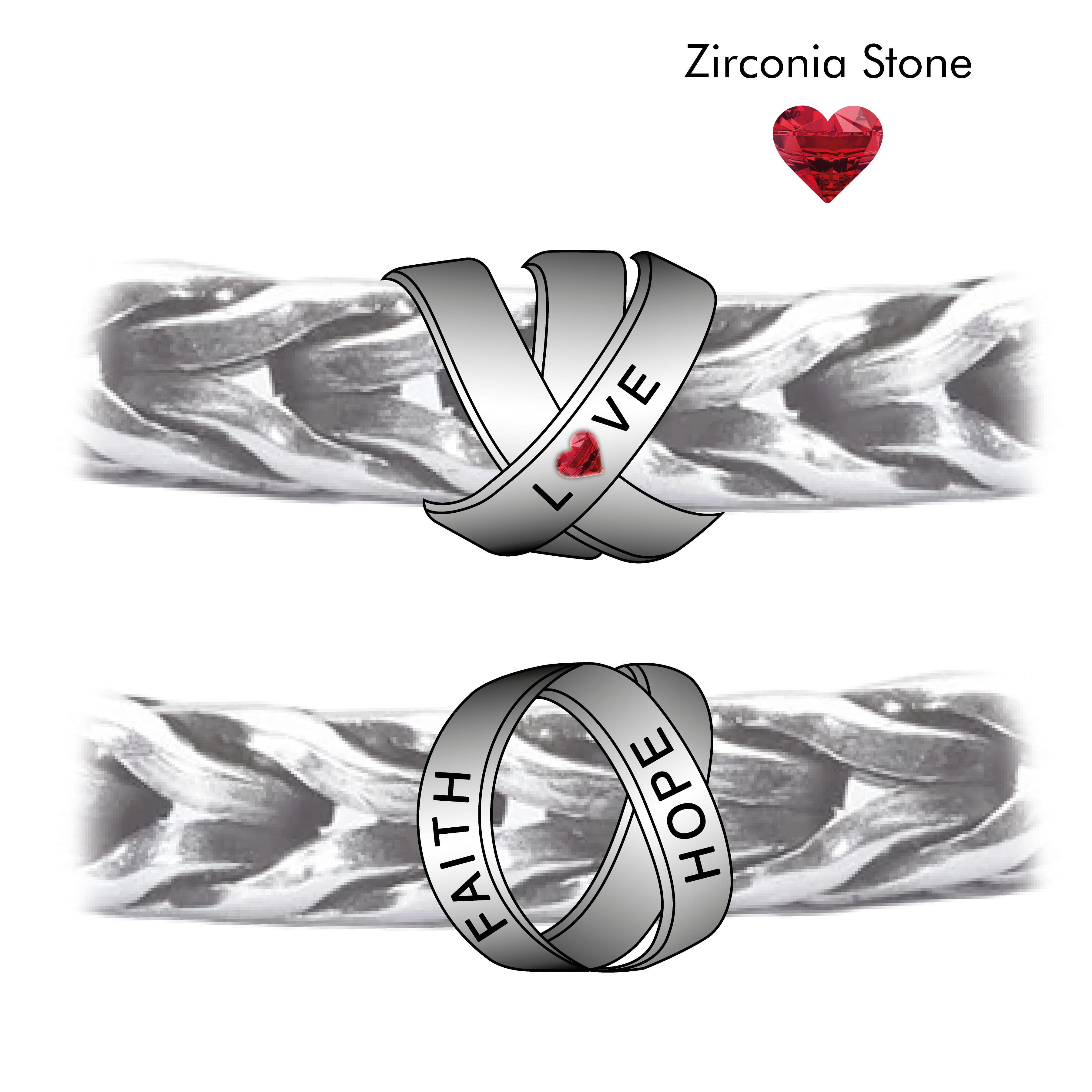 I got the inspiration for this bead from the well-known jewelry with the anchor, cross and heart - faith, hope and love. I was sitting with an elastic and got the idea that the three symbols could be united in a ribbon. Instead of the symbols, the words HOPE, FAITH and LOVE are engraved in the ribbon. I have made a suggestion where a small red heart in zirconia is part of the word LOVE