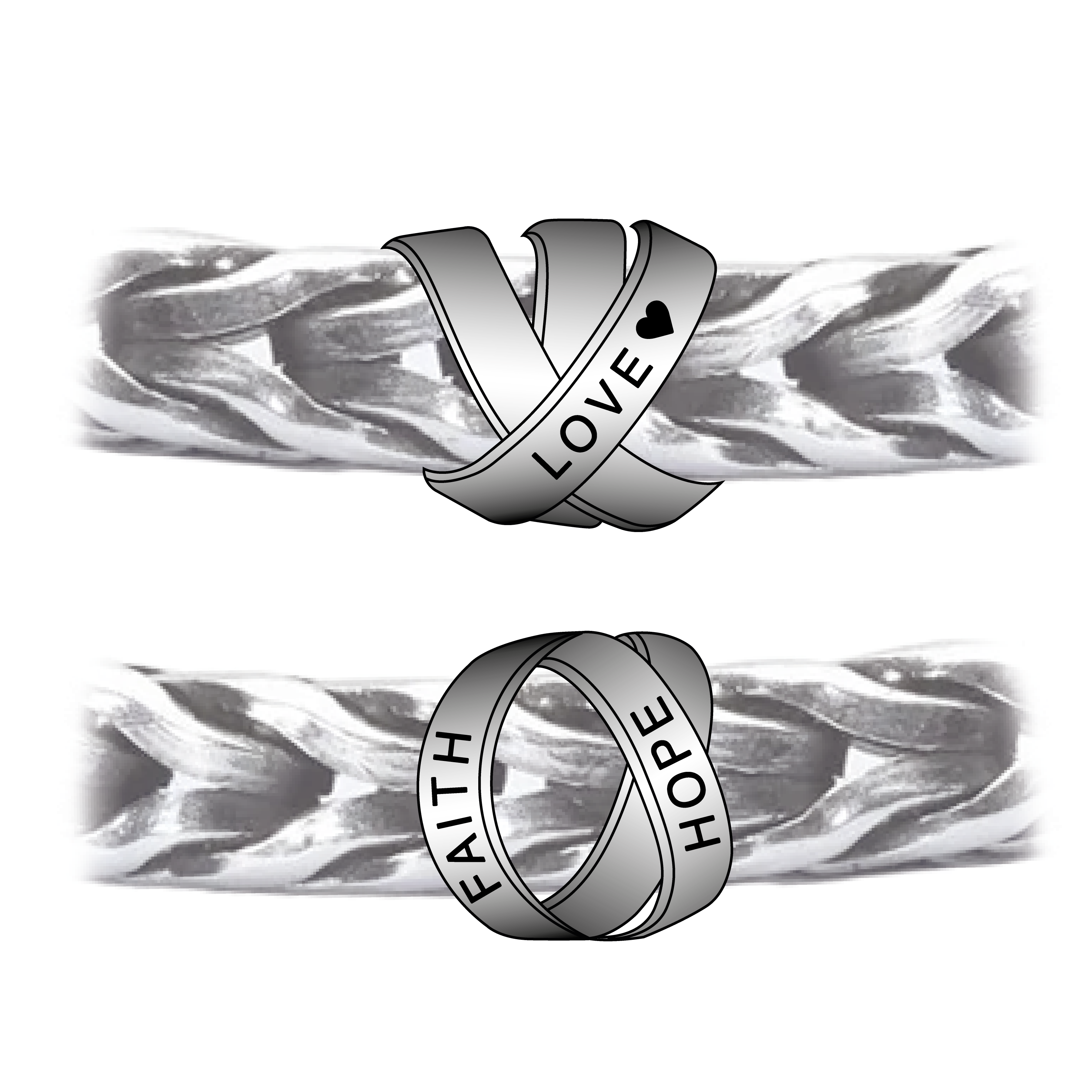 I got the inspiration for this bead from the well-known jewelry with the anchor, cross and heart - faith, hope and love. I was sitting with an elastic and got the idea that the three symbols could be united in a ribbon. Instead of the symbols, the words HOPE, FAITH and LOVE are engraved in the ribbon.