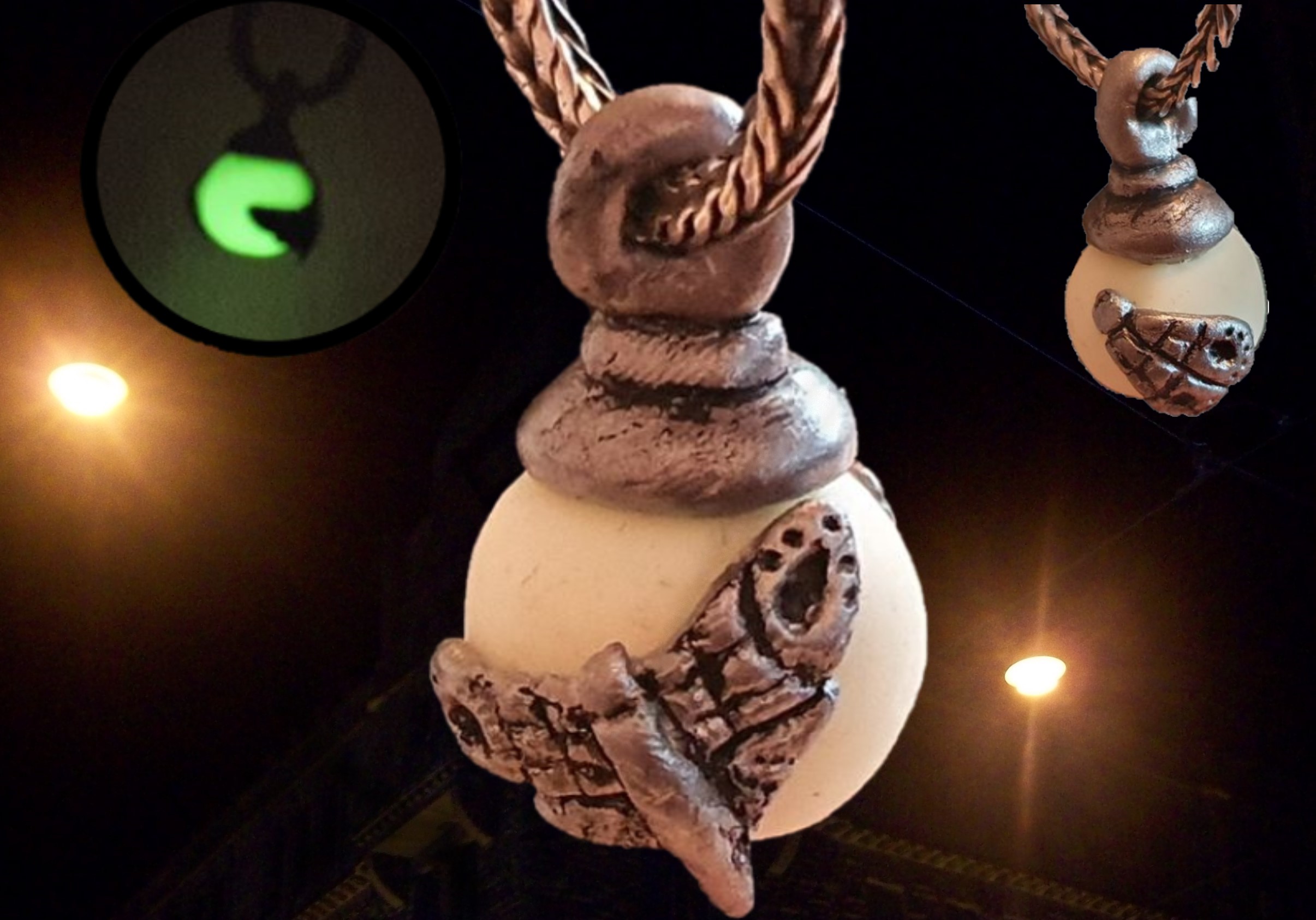 Feeling magically attracted by the light of street lights, moths and other insects gather around these spots reveiling how much life is active and awake in the dark of night. My bead design captures this phenomenon. The ball of the tassel consists of glow-in-the dark-material with silver moths attached. Let this tassel light up your bracelet even in deep dark nights!