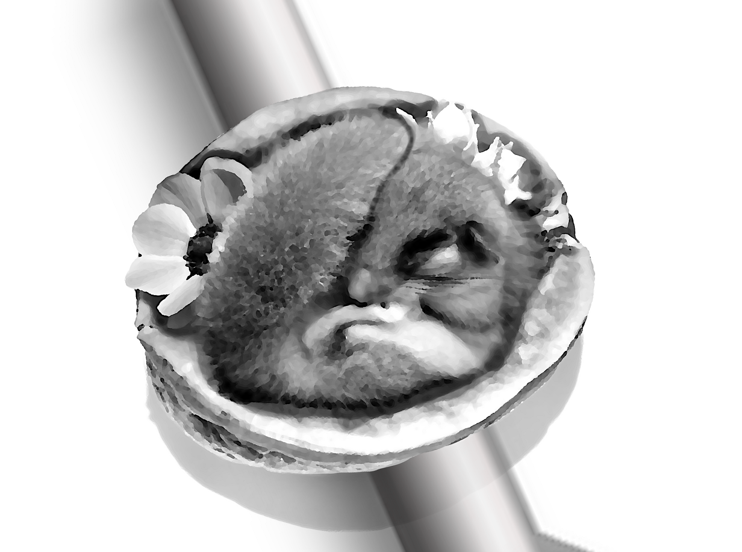 Dormice are so cute! Thse rodents sleep during the cold of winter in warm and cosy places, which simply looks adorable. My little doormouse is so small that it fits into a walnut shell. It made himself a cosy place decorated with flowers to take the warmth of summer into his sleeping place and also some nuts for a little snack in between. What is he dreaming of?