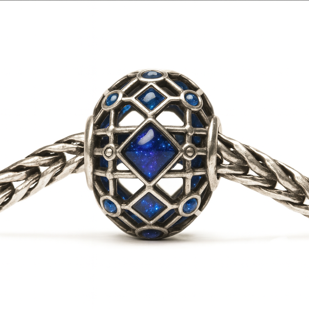 Deep blue glass set within sculpted silver openwork, reflecting the quiet glow of a starlit night.