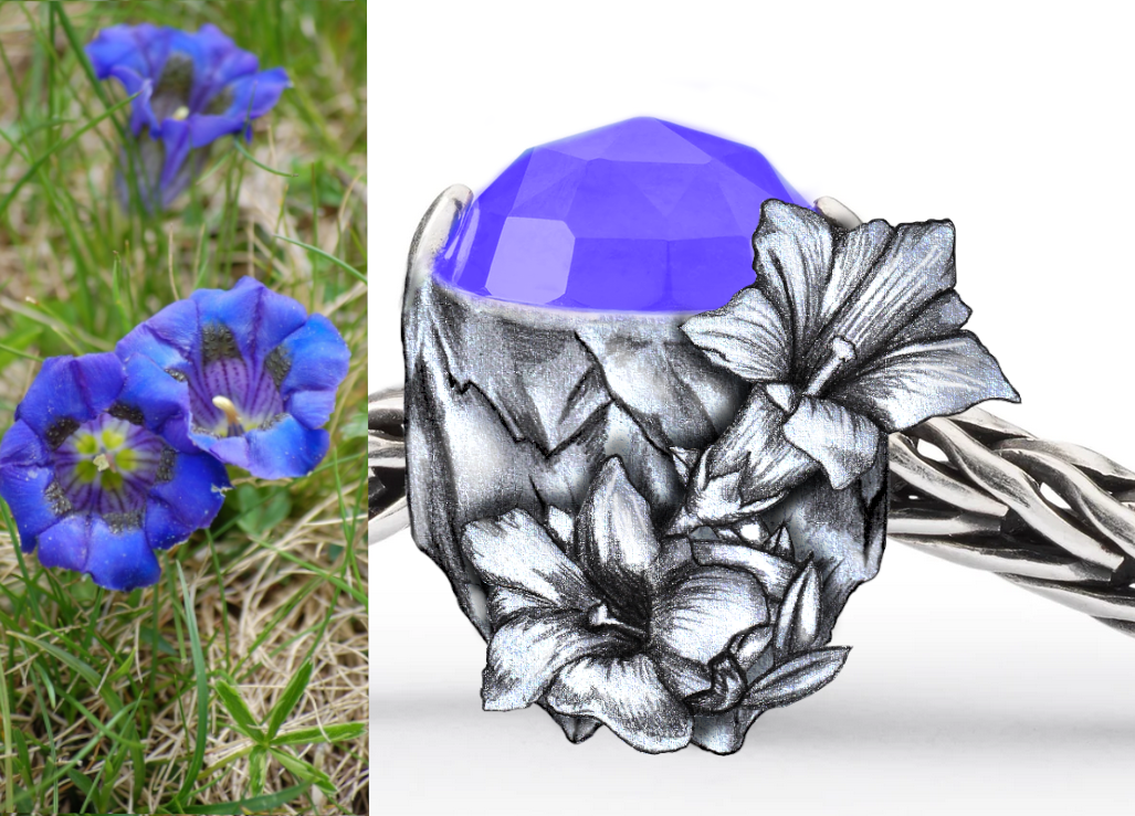 It's so fascinating, how life can find a place to grow even on barely hostile environments like stones and rocks up in the mountains. I live near the Alpes and love to go hiking there, so this design reminds me very much of my homecountry. You can see a typical flower of the alpes: gentian growing on a mountain silhouette. These wonderful plants have also made it to our balconies and gardens, so that we almost forgot, where they come from - the rough mountains!