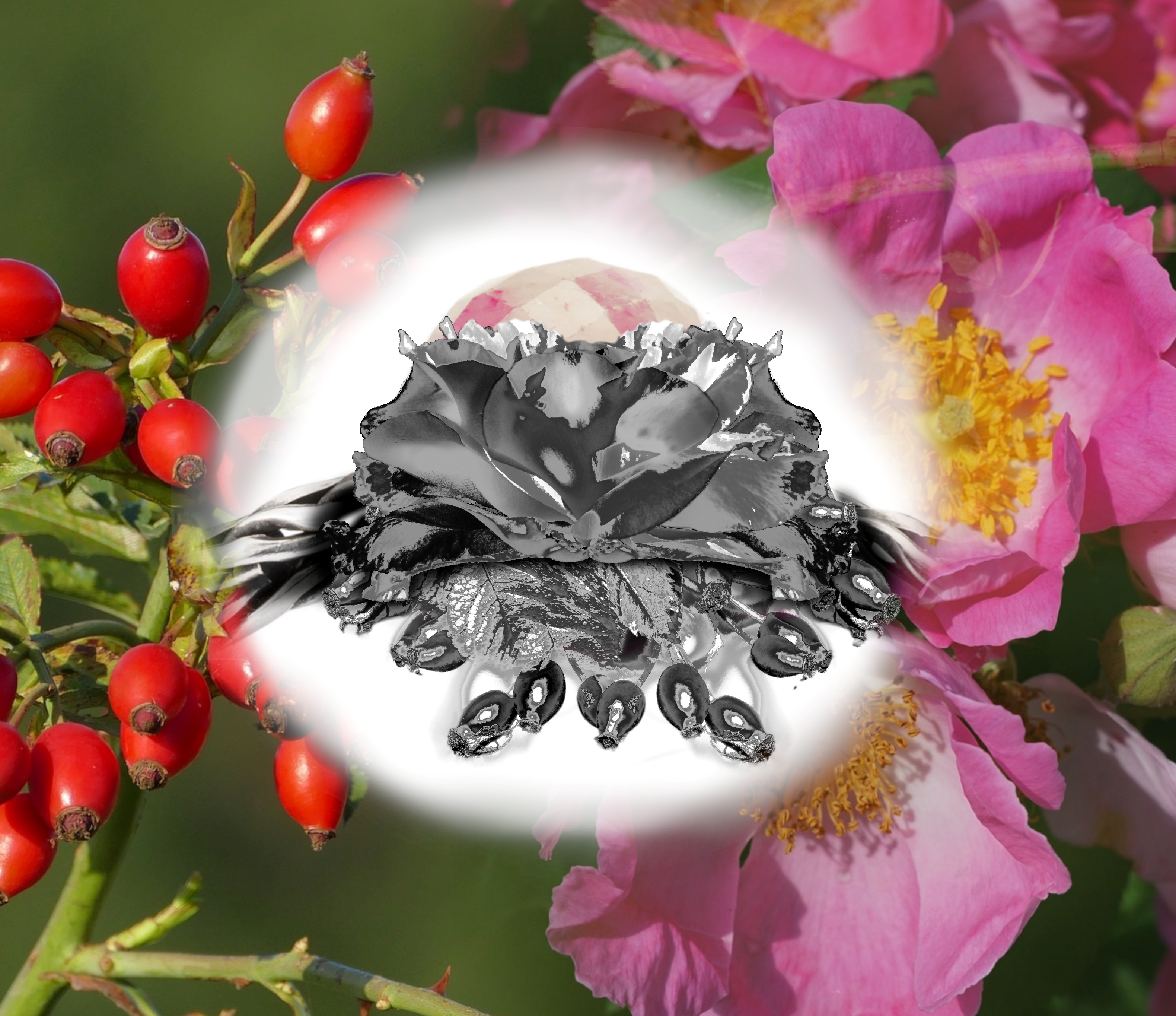 Roses are beautiful flowers, but they also have thorns. This bead design shows the richness of the wonderful dog rose, that makes us smile when we see the beautiful flowers, keeps us away from harming it using its thorns and provides us delicious rose hips to eat.