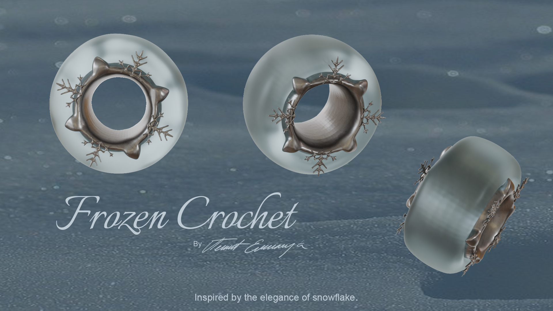 The piece was created using ZBrush, Blender, and Photoshop, combining digital sculpting and design tools to achieve intricate, lace-like details and refined structure.