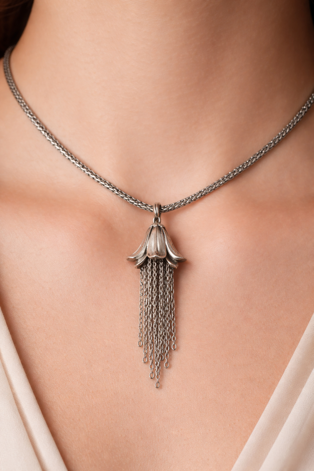 Moon Cascade — an elegant flower in which soft petal lines unfold gracefully, flowing into delicate silvery strands. Their gentle motion evokes a quiet moonlit rain, creating a feeling of mysterious radiance and weightless harmony.