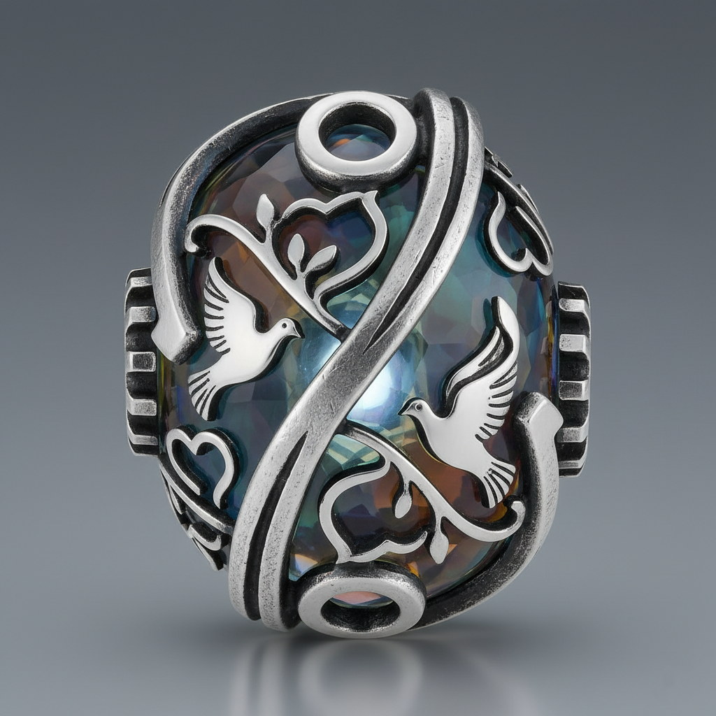 "UNO" was crafted from crystal and embellished with sinuous silver details that make it even more precious. "UNO" is part of my "peace" bead collection, symbolizing inner harmony, peace, integrity, and tranquility.