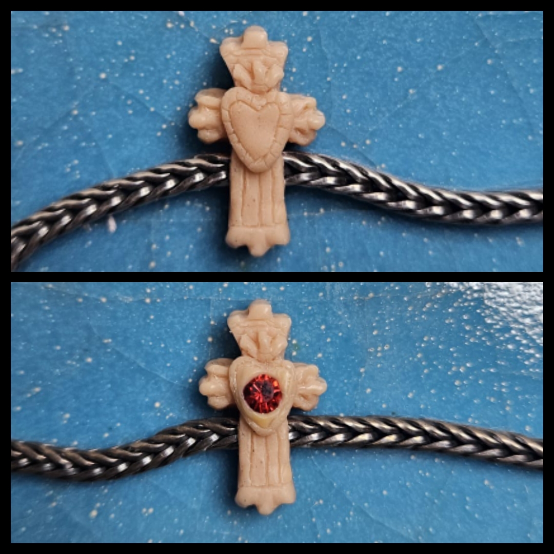 Mexikanisches Silberkreuz, auf einer Seite mit eingearbeitetem roten Glasstein.