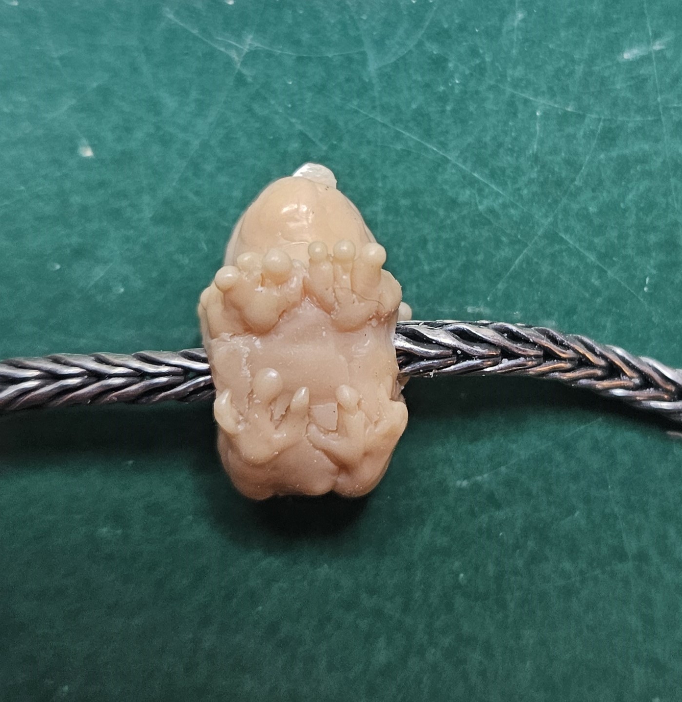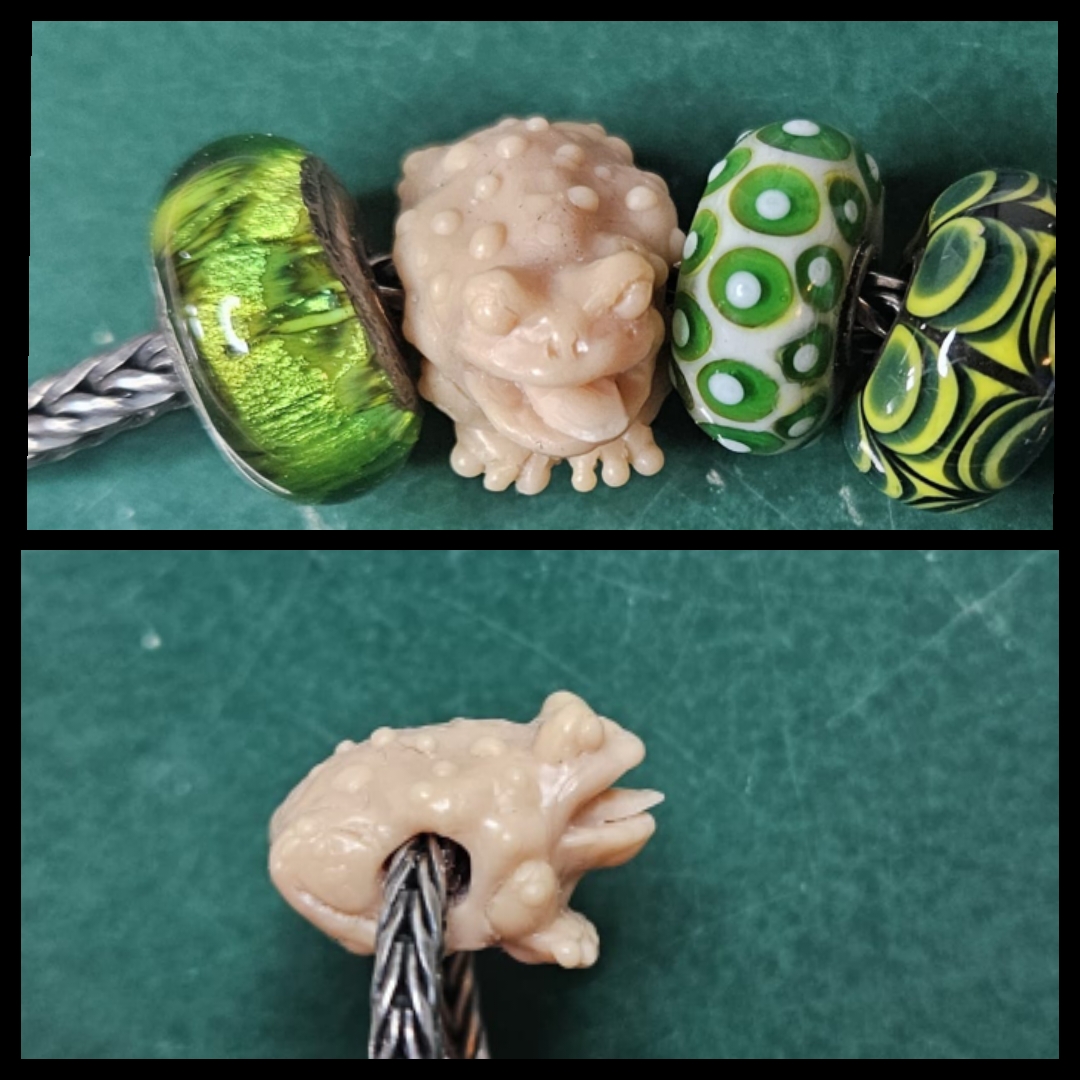 Silberbead in Form einer Kröte.